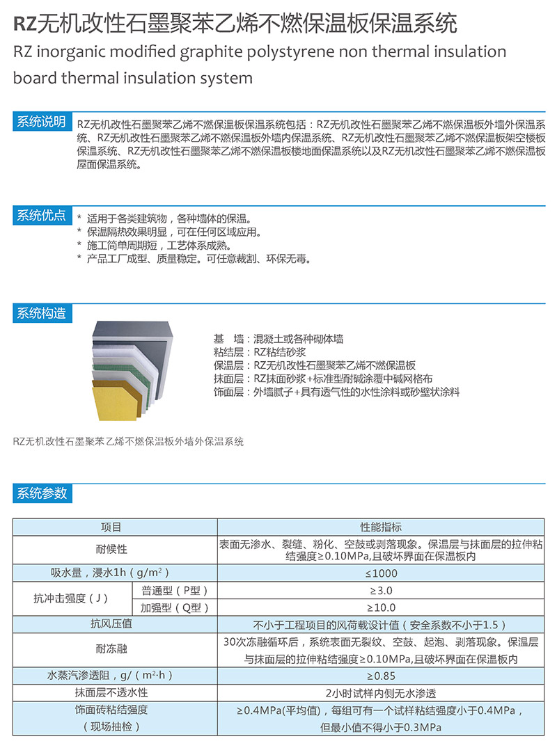 RZ无机改性石墨聚苯乙烯不燃保温板保温系统